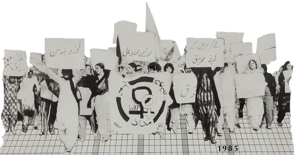 In 1983, the Women Action Forum and Pakistan Women Lawyers Association protested against radical laws imposed by the dictator Zia-Ul-Haq.